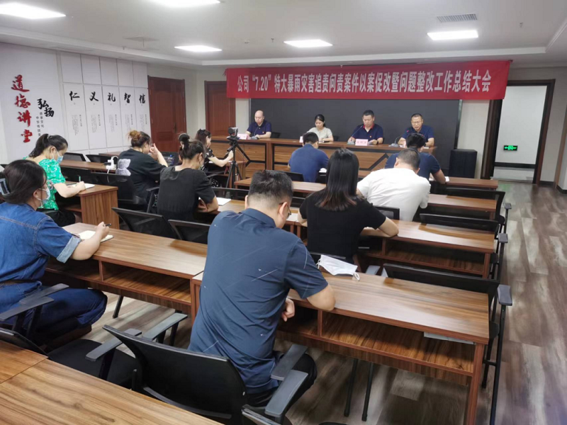 8月19日,鄭州市市場(chǎng)發(fā)展投資有限公司召開(kāi)“7·20”特大暴雨災(zāi)害追責(zé)問(wèn)責(zé)案件以案促改暨問(wèn)題整改工作總結(jié)大會(huì)