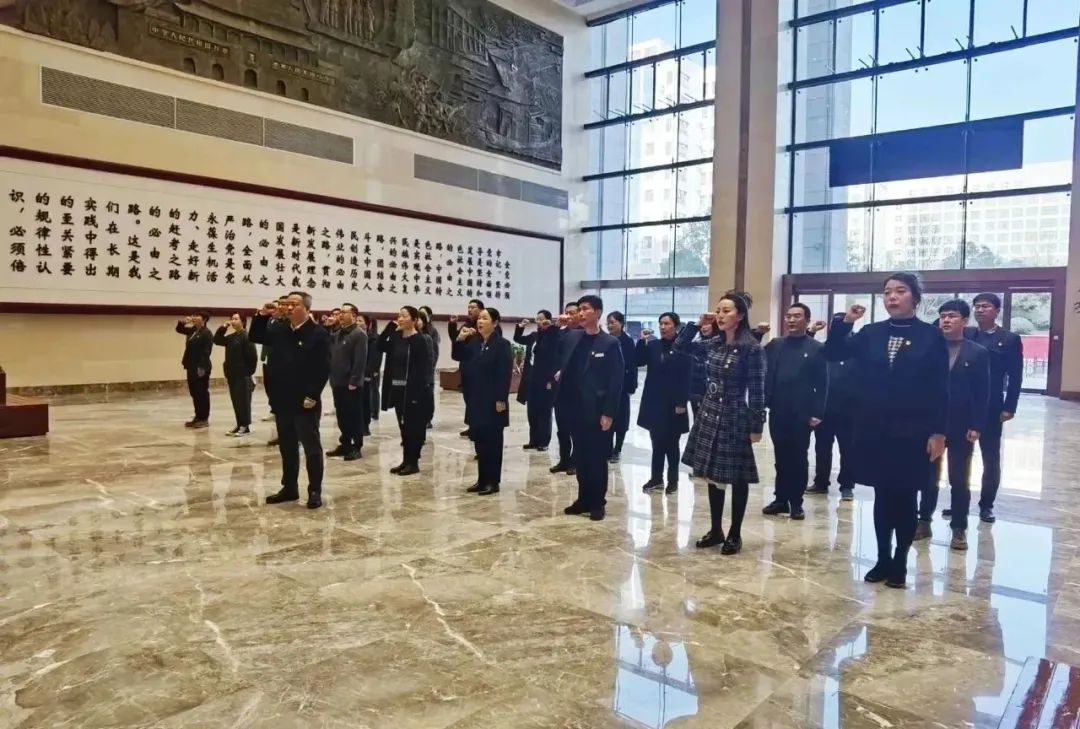 參觀學習開始前,公司黨委副書記、副總經理成小俊同志帶領全體黨員面對鮮紅的黨旗,鄭重肅立,高舉右拳,以集體宣誓的方式重溫入黨誓詞。一句句鏗鏘有力的誓詞,表達著對黨的絕對忠誠和為黨的事業奮斗終身的決心。