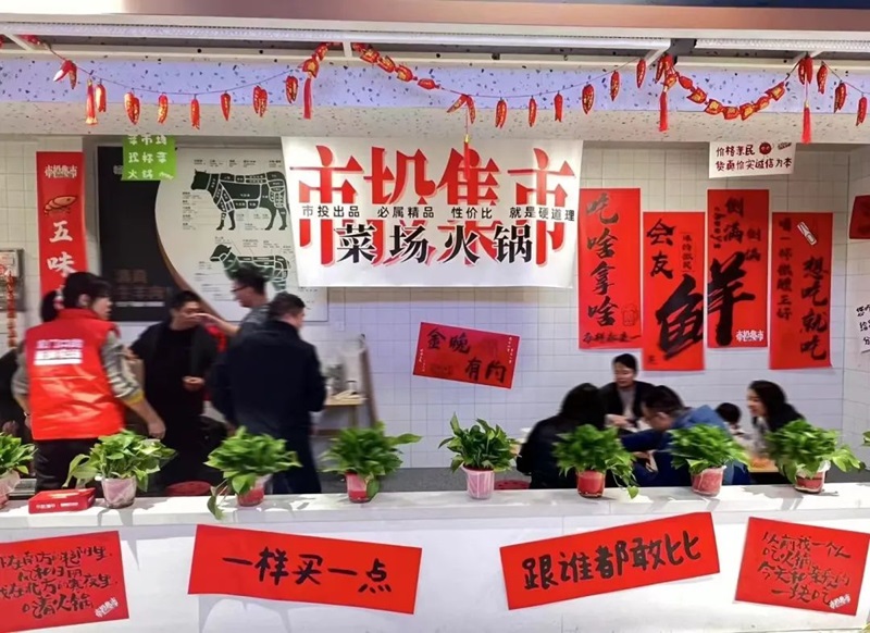 為全方位滿足廣大顧客菜市場吃火鍋體驗需求,市投集市未來路市場設立火鍋專區,引入火鍋品類商戶,現有商戶全員參加,免費提供火鍋鍋底和餐具,顧客可根據個人喜好進行搭配和調整,創造出豐富多樣的火鍋料理。