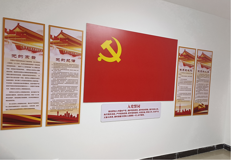 文化墻內(nèi)容包括黨的一大到二十大黨史、四個意識、四個自信、兩個維護、黨員干部職工風(fēng)采、黨建品牌、黨務(wù)公開、黨員示范崗等內(nèi)容,陣地建設(shè)的打造,不僅宣傳了黨建知識、展現(xiàn)了黨員形象,還涵蓋了當(dāng)前黨建工作的重點內(nèi)容,將黨建品牌上墻,可以很直觀的看到黨建深度融入生產(chǎn)經(jīng)營工作取得的實效性做法,可以讓職工群眾更深刻直觀的了解黨員先進形象,同時不斷激勵黨員創(chuàng)先爭優(yōu)、爭做模范,進一步提升了黨建的文化內(nèi)涵,使廣大黨員群眾在潛移默化中了解、支持、深化黨建工作,不斷提升黨建活力,發(fā)揮黨建引領(lǐng)作用。